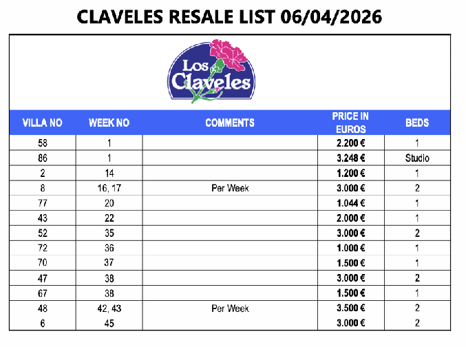 Los Claveles Villas for sale